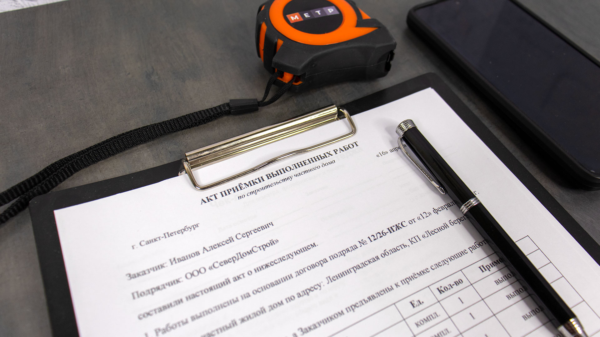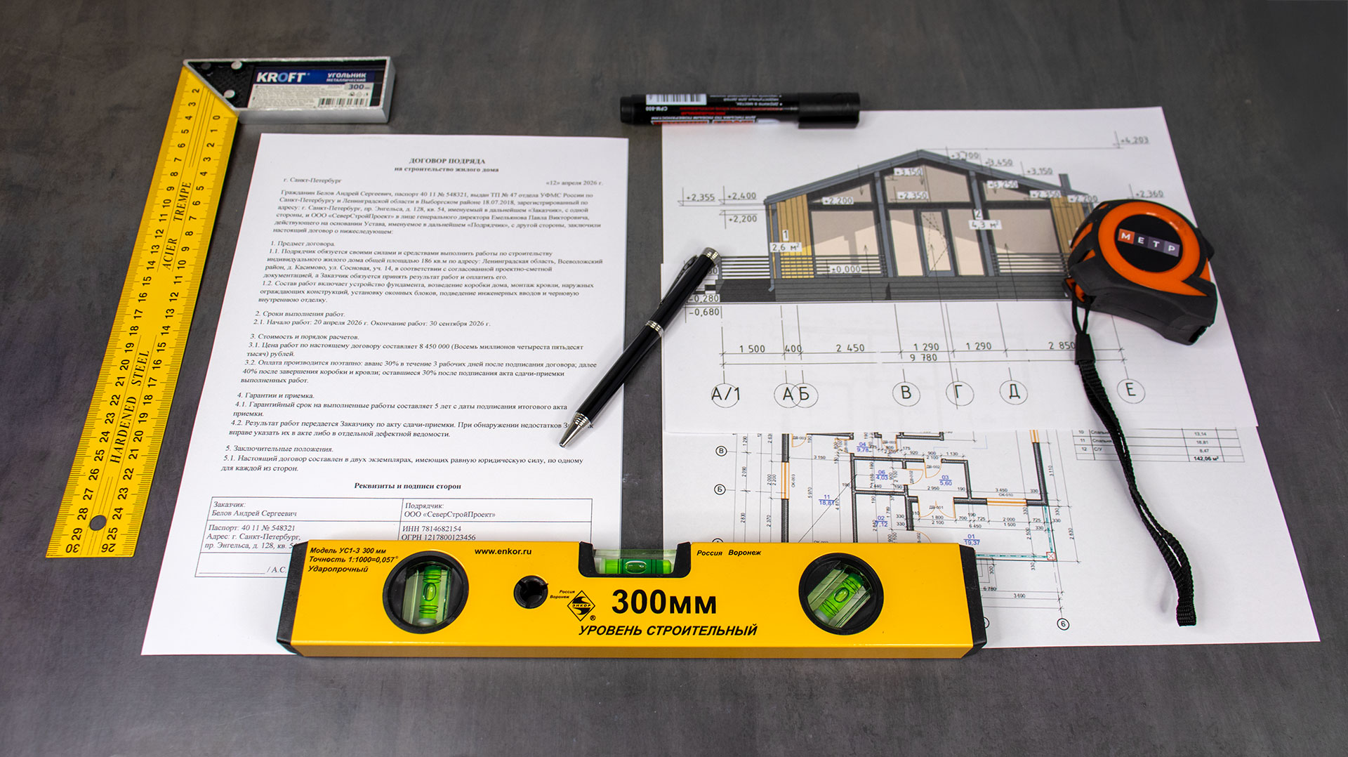 Договор, проект и инструменты для приёмки коттеджа у подрядчика