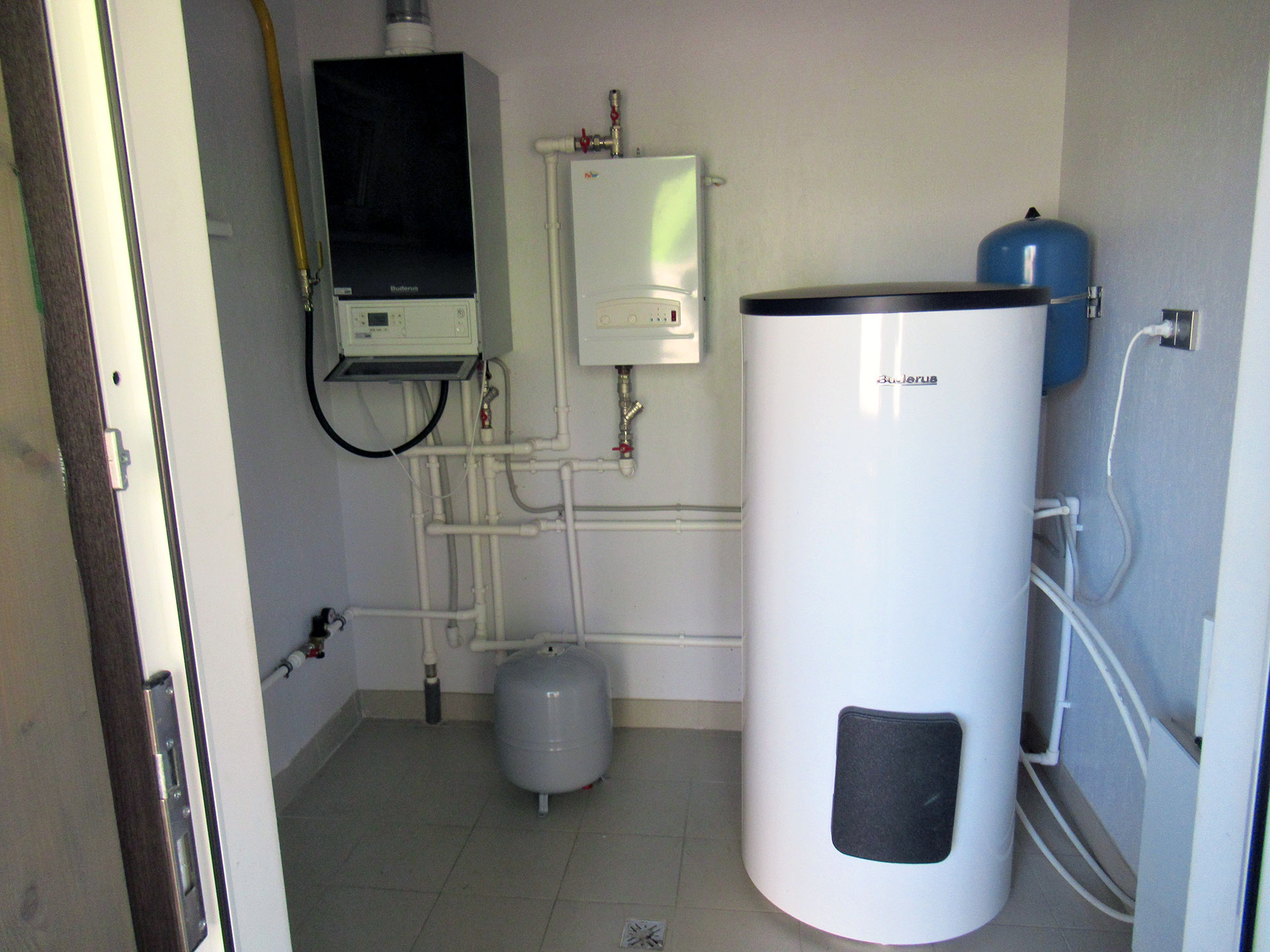 Котельная частного дома с котлом, бойлером и разводкой инженерных систем при осмотре перед приёмкой