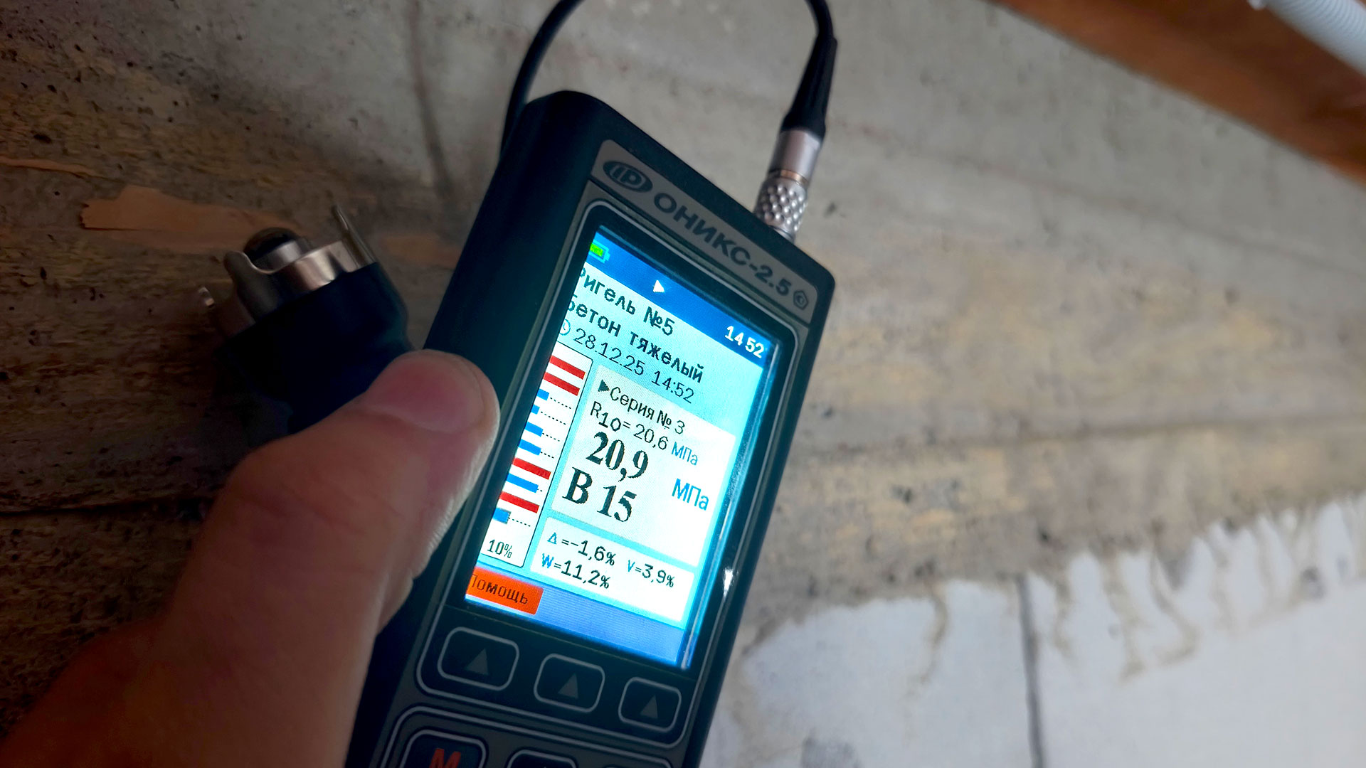 Приборный контроль прочности бетонной конструкции при строительной экспертизе дома