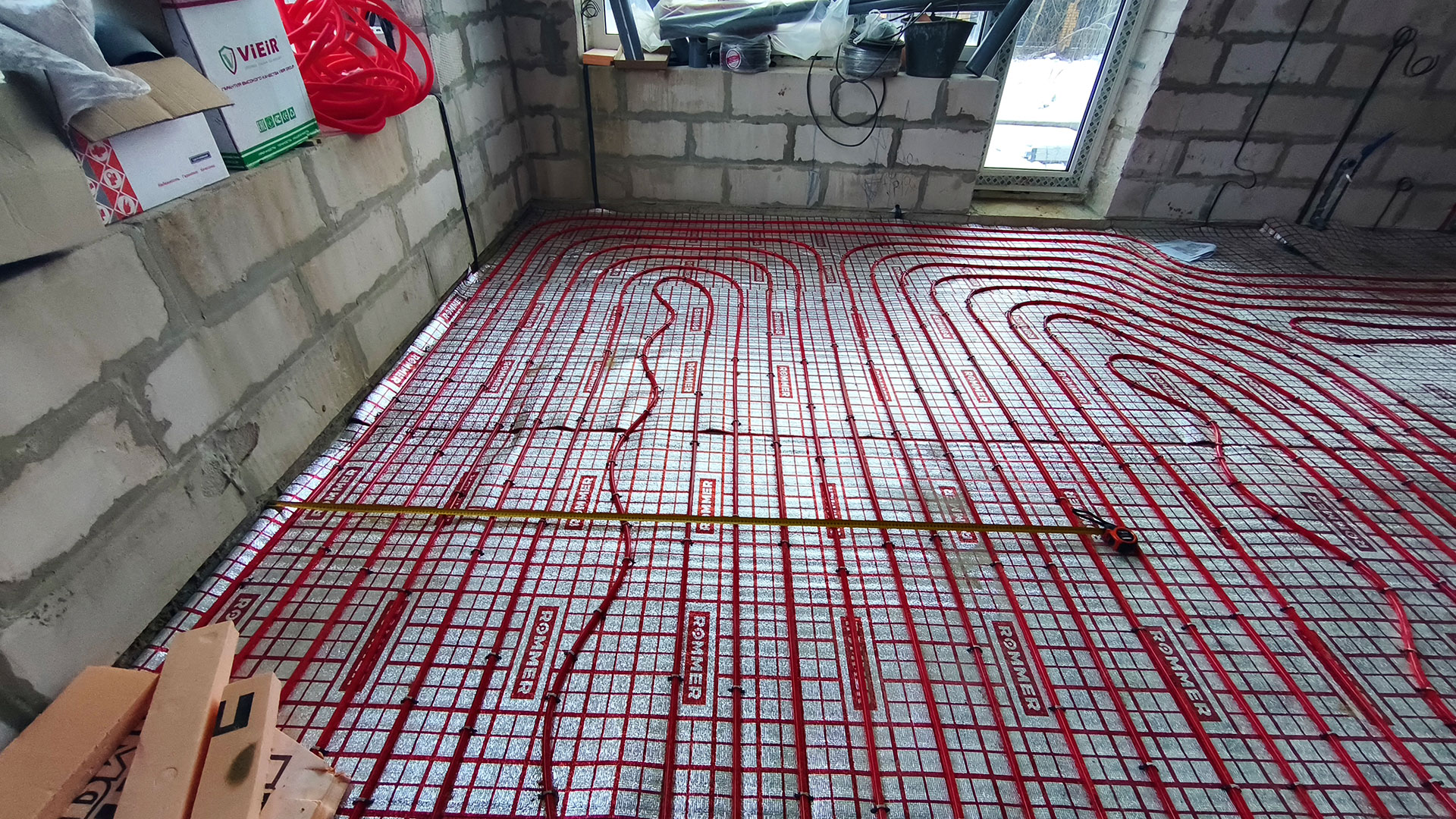 Система тёплого пола в частном доме перед заливкой стяжки при приёмке коттеджа