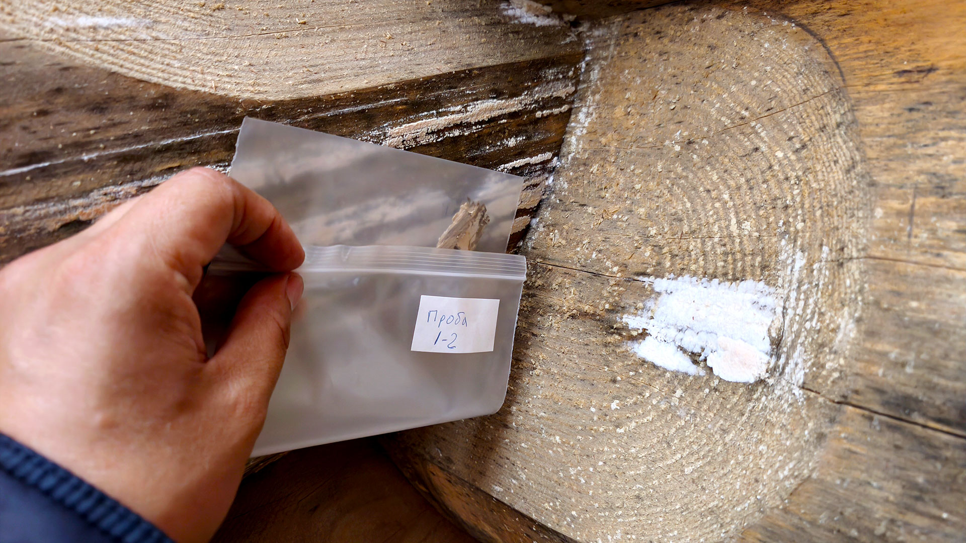 При спорных или запущенных случаях эксперт отбирает пробы, чтобы определить характер поражения древесины и оценить риски для конструкции.