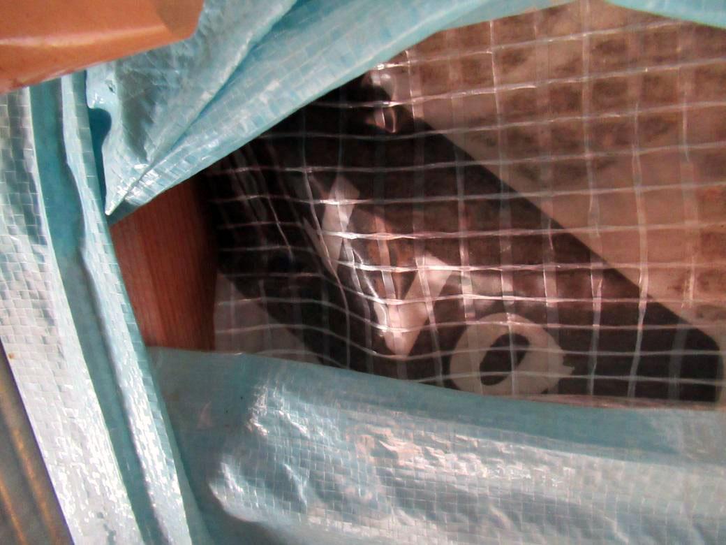 При осмотре было установлено, что в местах нахлёста полипропиленовая плёнка голубого цвета была проклеена скотчем негерметично.