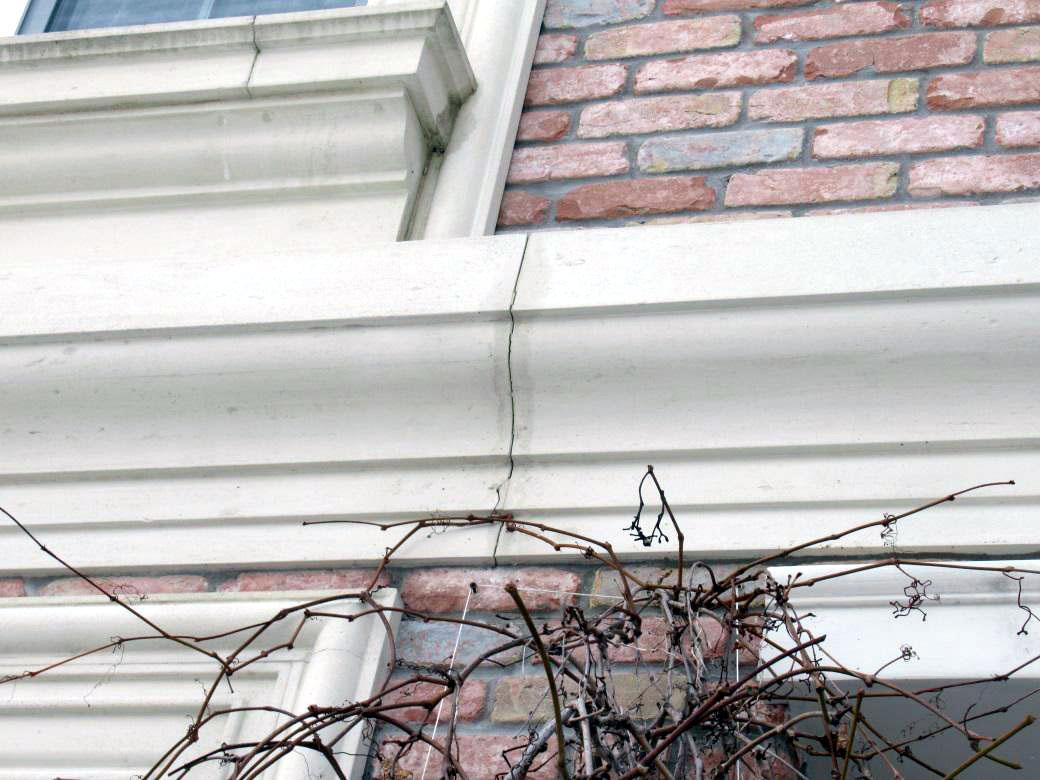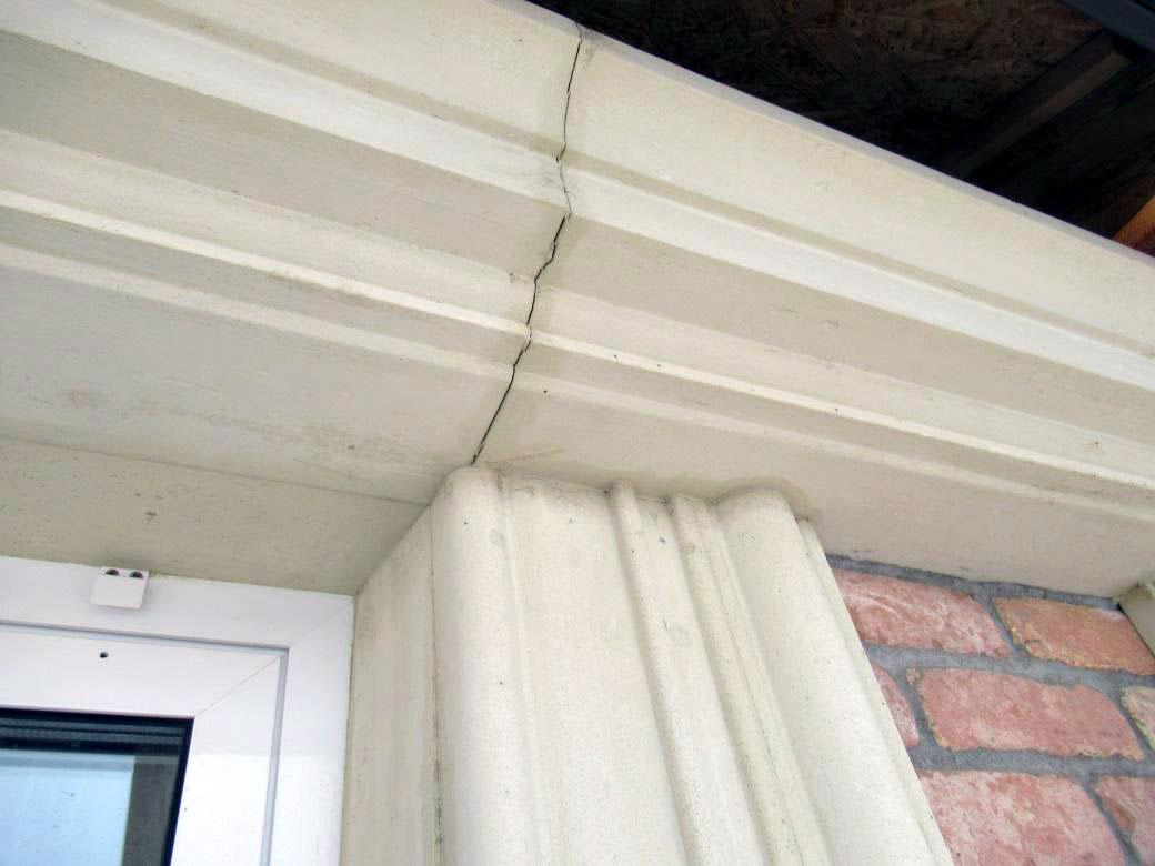 При таком увлажнении страдала уже не только сама зона примыкания кровли. Избыточная влажность ограждающих конструкций стены, а также попадание воды в зазоры и полости между стеной и декоративными элементами лепнины в зимний период могли приводить к деформации фасадных элементов и раскрытию швов между ними.