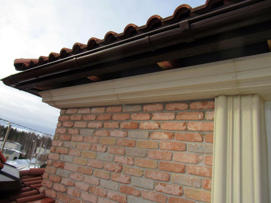 Заказчик обратился ко мне после реконструкции кровли двухэтажного индивидуального жилого дома площадью более 400 м², выполненной из керамической черепицы BRAAS. Проблема проявилась уже в первый зимний период эксплуатации после завершения работ. На наружной поверхности стен появились видимые признаки намокания, а между декоративными элементами обрамления оконных и дверных проёмов стали отчётливо проявляться монтажные швы, которые раньше заметны не были.