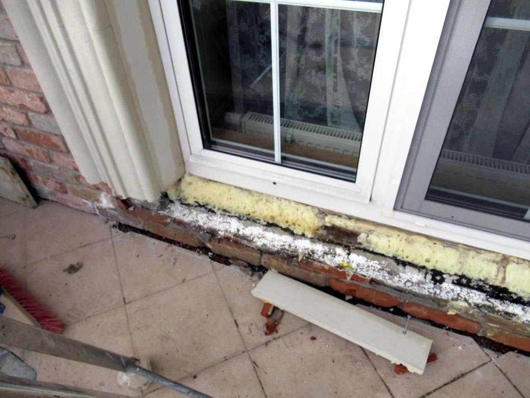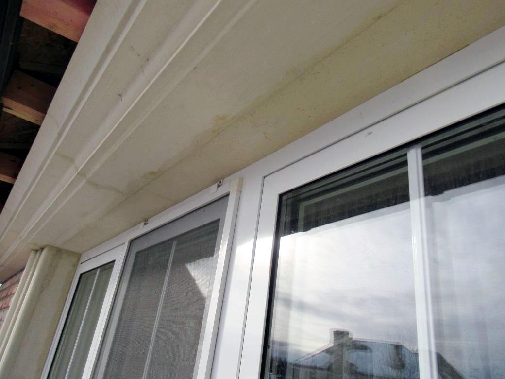 При этом по результатам осмотра было видно, что кровля была не единственным возможным источником увлажнения. На объекте дополнительно были выявлены нарушения в организации водоотвода с террасы, а также дефекты монтажа оконных блоков и узлов их примыкания к стеновым проёмам. Эти узлы тоже могли участвовать в намокании наружных стен и усиливать общую картину увлажнения фасада.