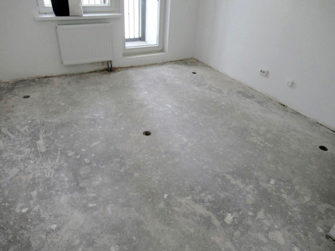 По осмотру, вскрытию участка пола и документам удалось установить состав конструкции пола без учета чистового покрытия. Сверху вниз он выглядел так: