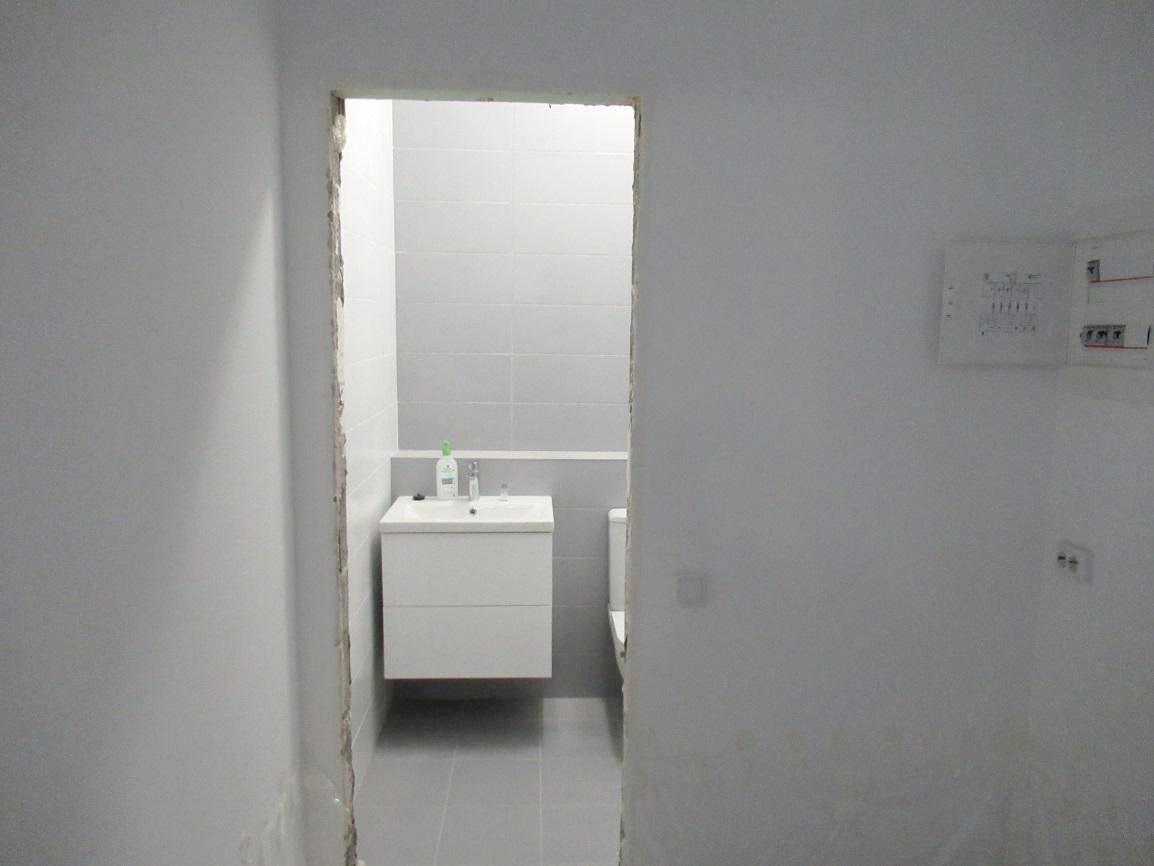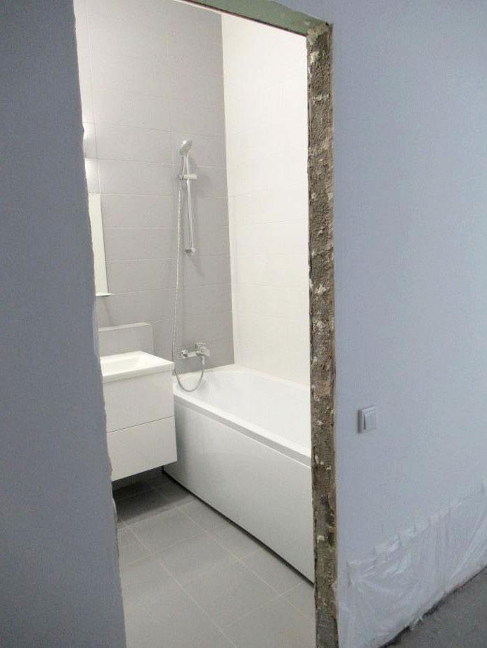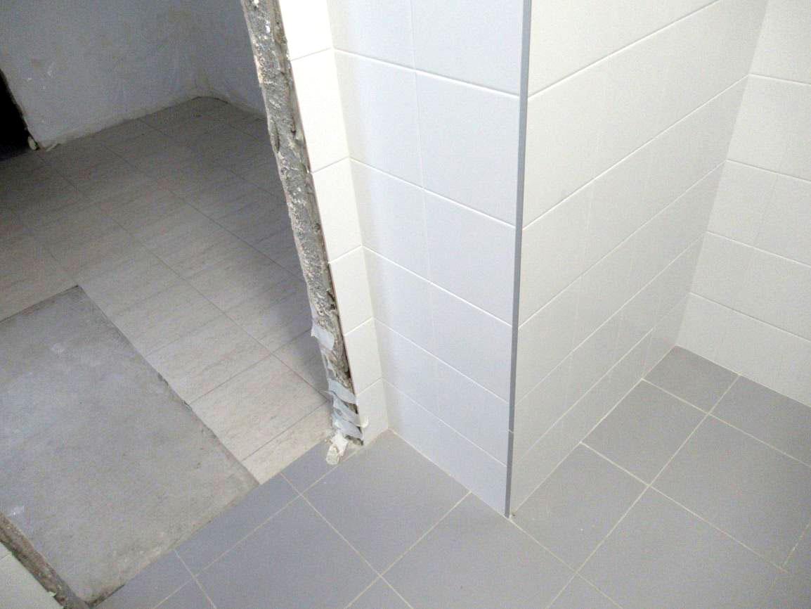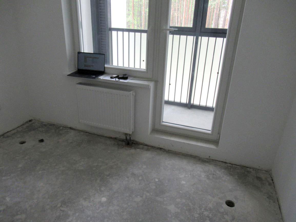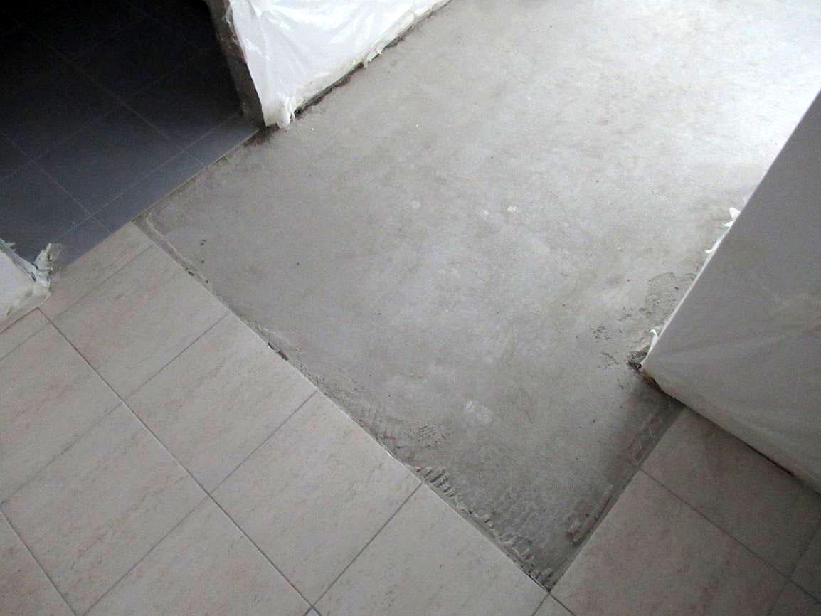 Во время осмотра выяснилось, что пол в помещениях был в разной степени готовности. В ванной, санузле и прихожей отделочные работы по полу уже были завершены: здесь было уложено финишное покрытие из керамогранитной плитки по цементно-песчаной стяжке. В коридоре, кухне-гостиной и комнате чистового покрытия еще не было, хотя сама стяжка уже была выполнена.