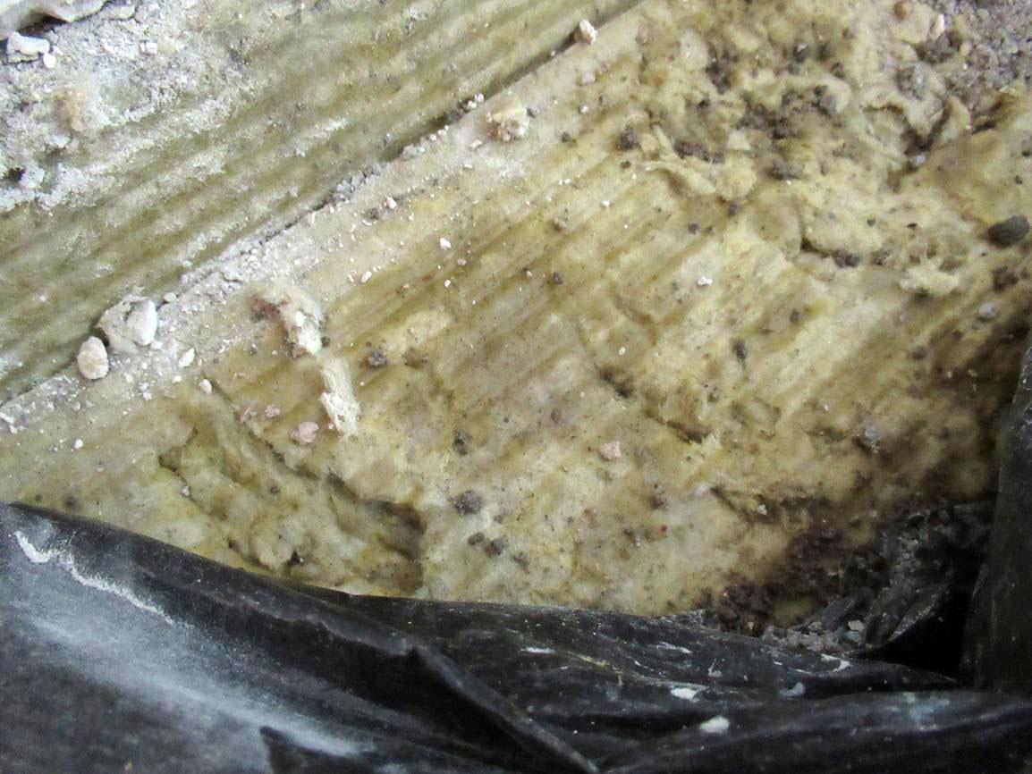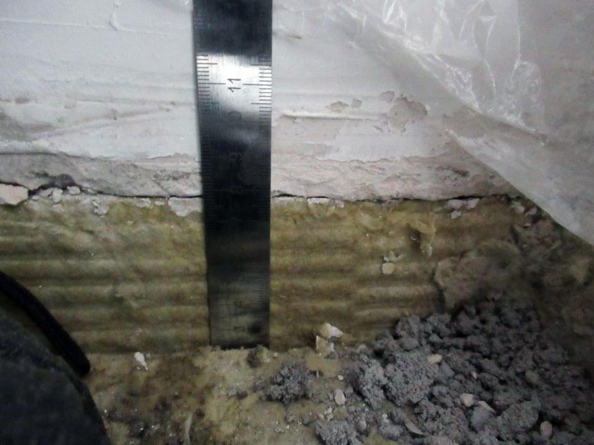 После вскрытия и замеров нужно было ответить на следующий вопрос: можно ли оставить такой утеплитель в конструкции пола или его необходимо менять.