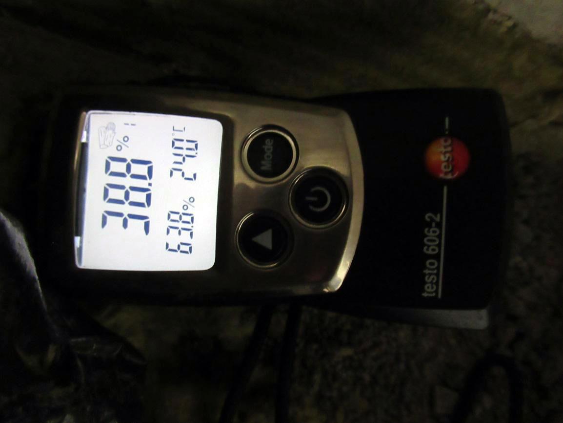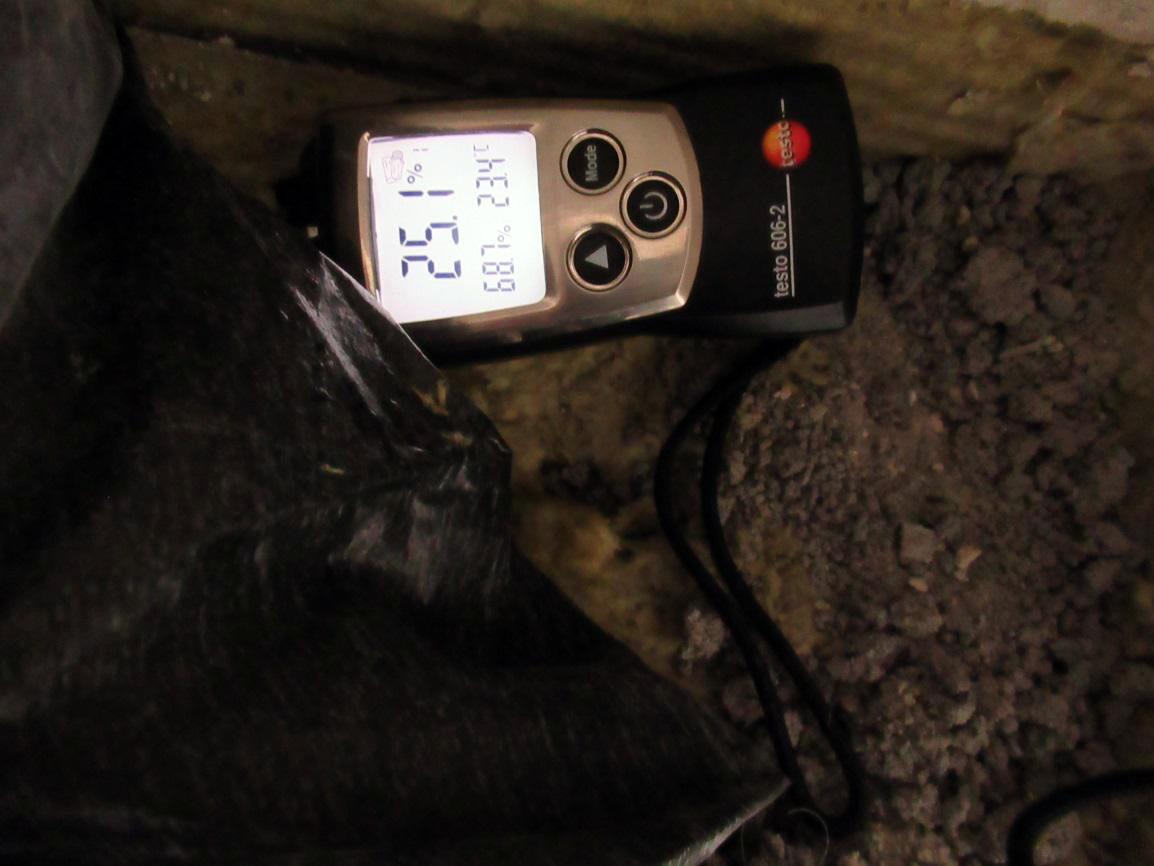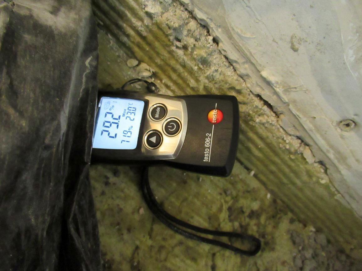 Дальше были выполнены контрольные замеры влажности утеплителя влагомером Testo 606-2. По результатам измерений влажность утеплителя составила от 24,2% до 50,8%, что однозначно подтверждало его намокание.