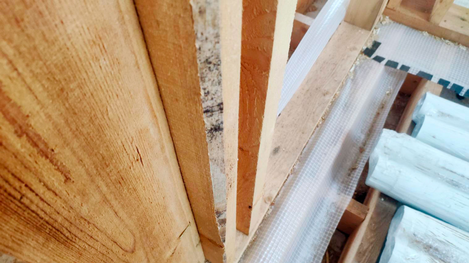 Когда стройка не завершена, нет закрытого контура и при этом не выполнена предусмотренная сметой биозащита древесины, любое нарушение хранения материалов и защита конструкций от влаги начинает работать против объекта.
