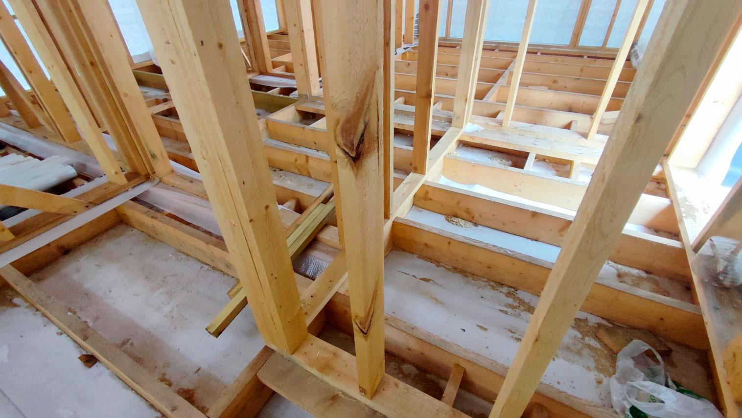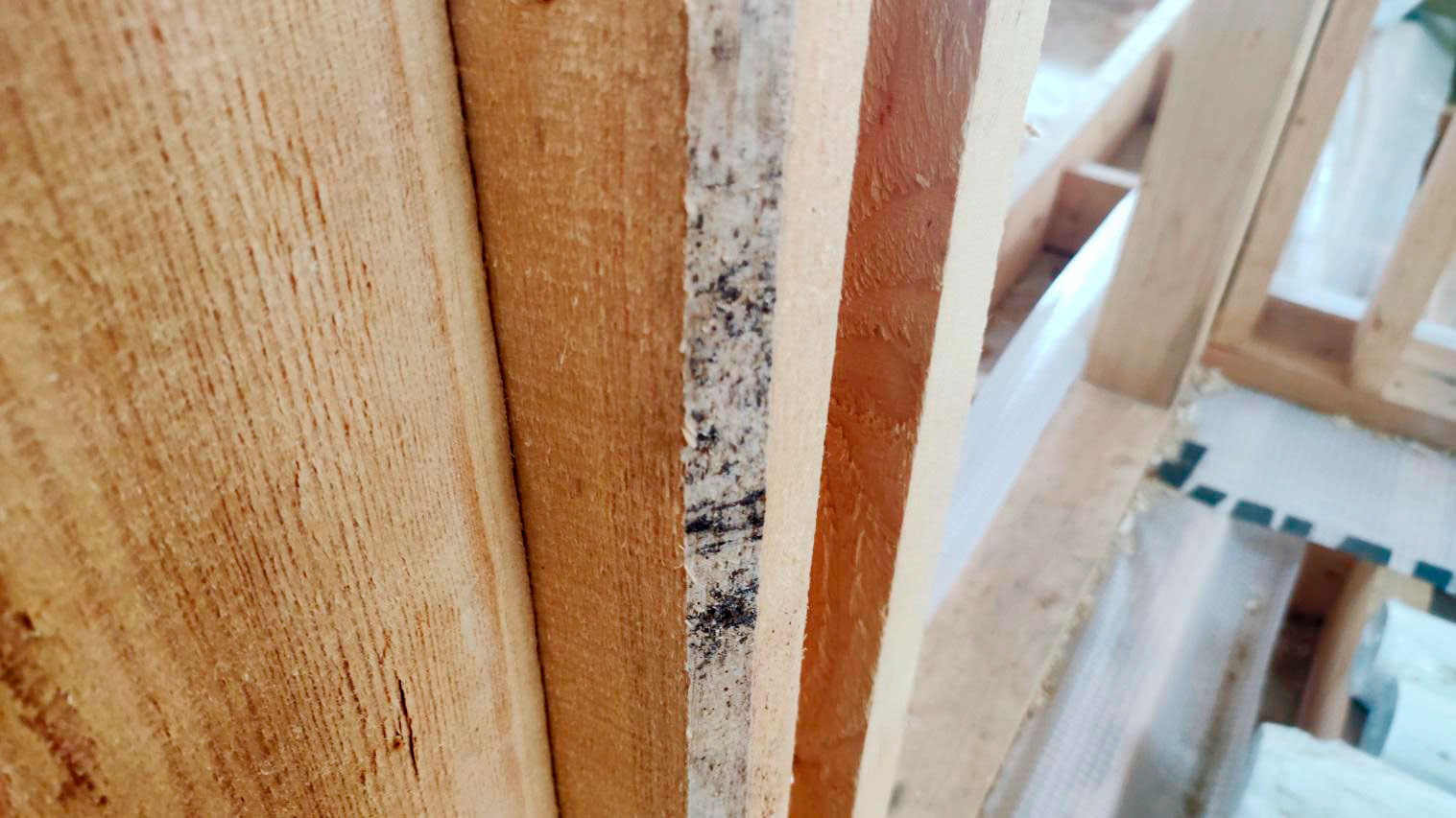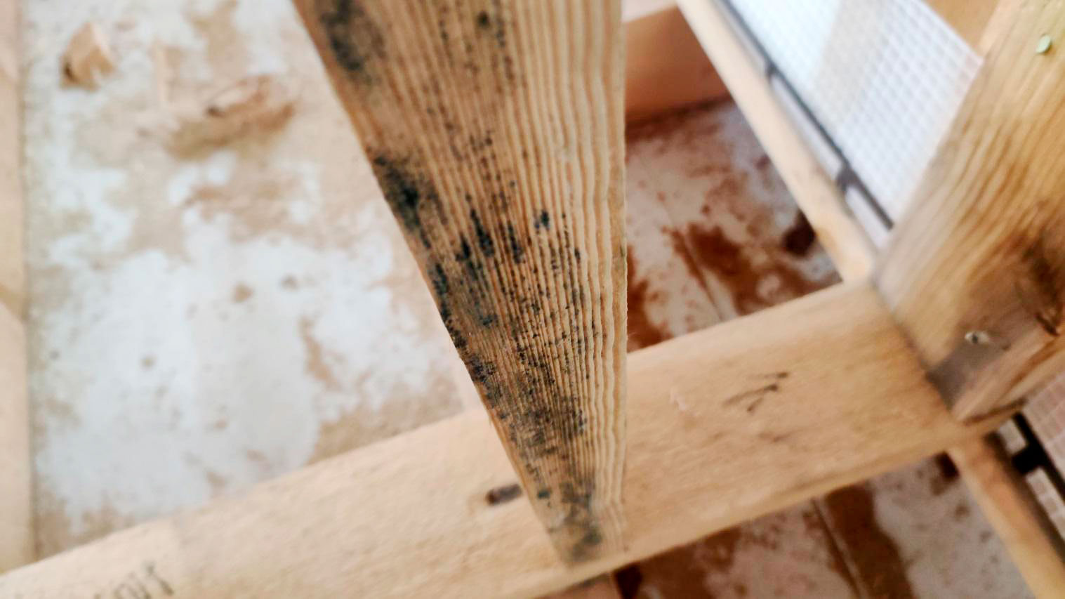 На каркасных домах есть простое правило: пока нет закрытого контура и нормальной защиты, древесина не должна “жить под погодой”. В этом случае я зафиксировал обратную картину: материалы и конструкции находились в условиях, которые напрямую приводят к намоканию и переувлажнению, а значит запускают процессы биопоражений.