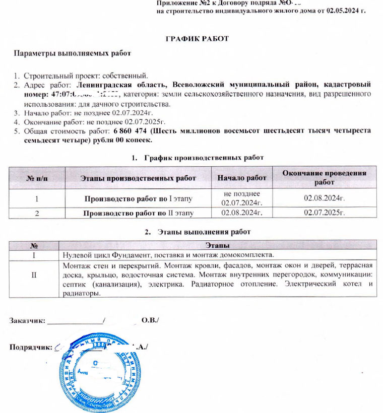 База всего спора: что именно подрядчик должен был построить, в какие сроки и что считается выполнением по договору.Смета (перечень работ и их стоимость).