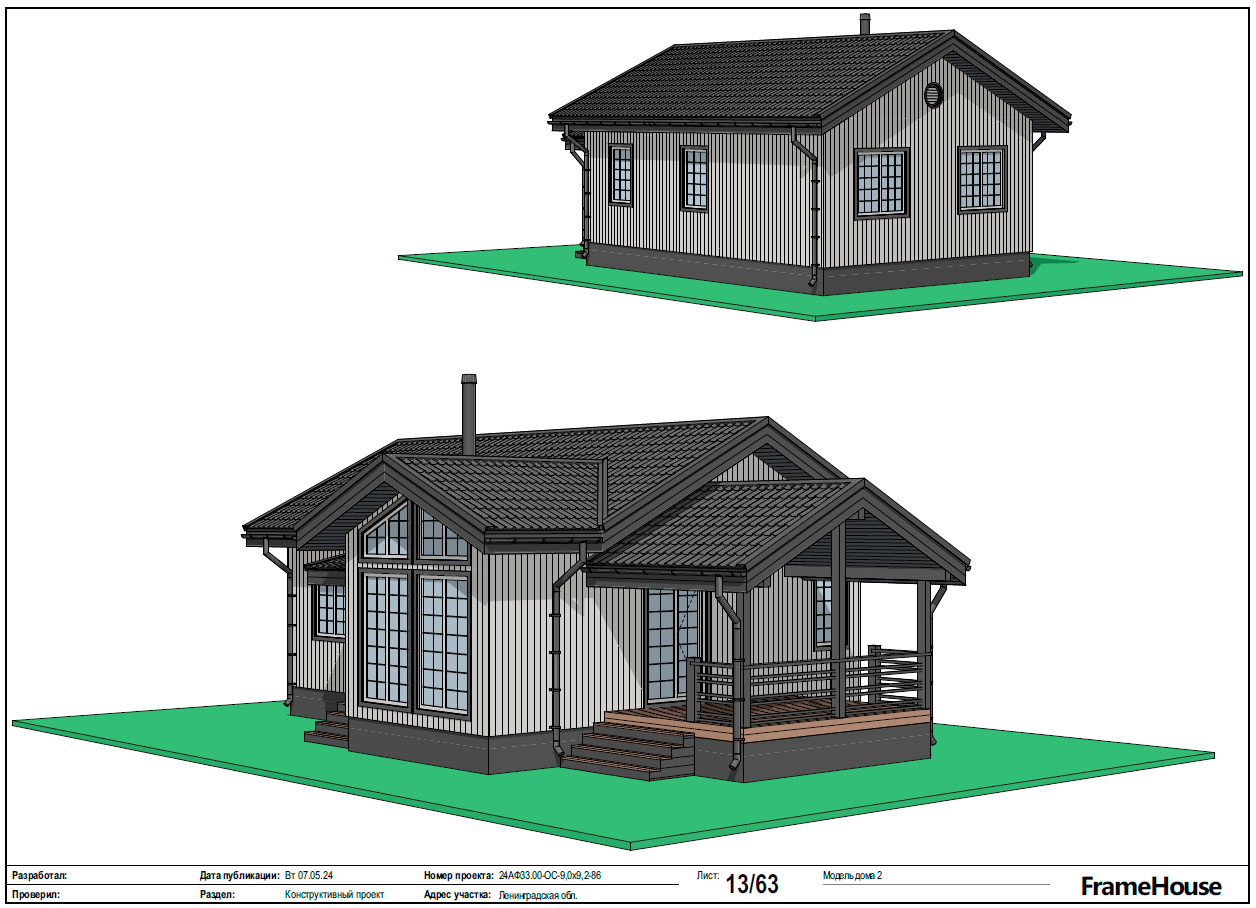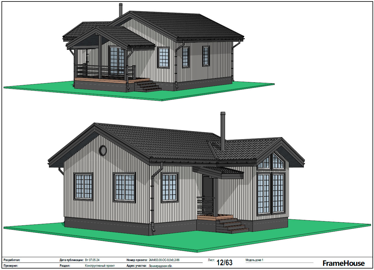 Чтобы читатель понимал, как дом выглядит по проекту и как устроен каркас, в заключение включены проектные изображения: