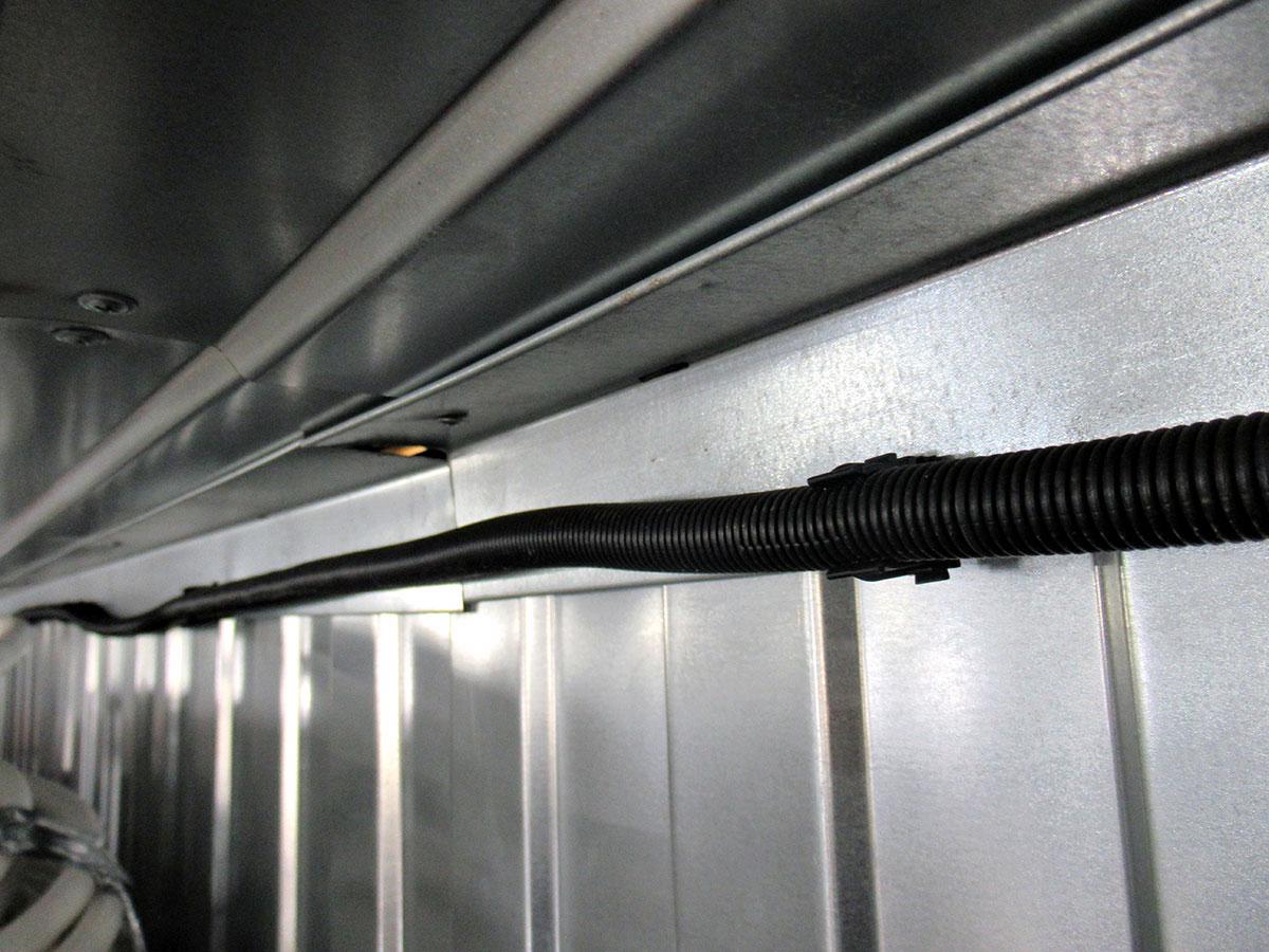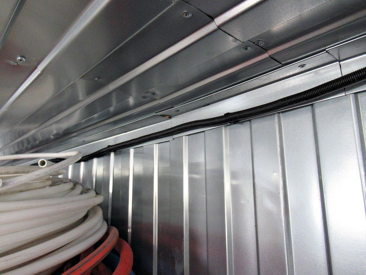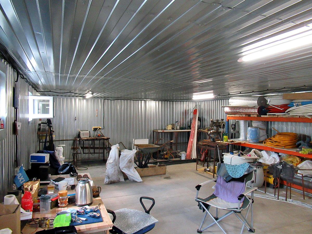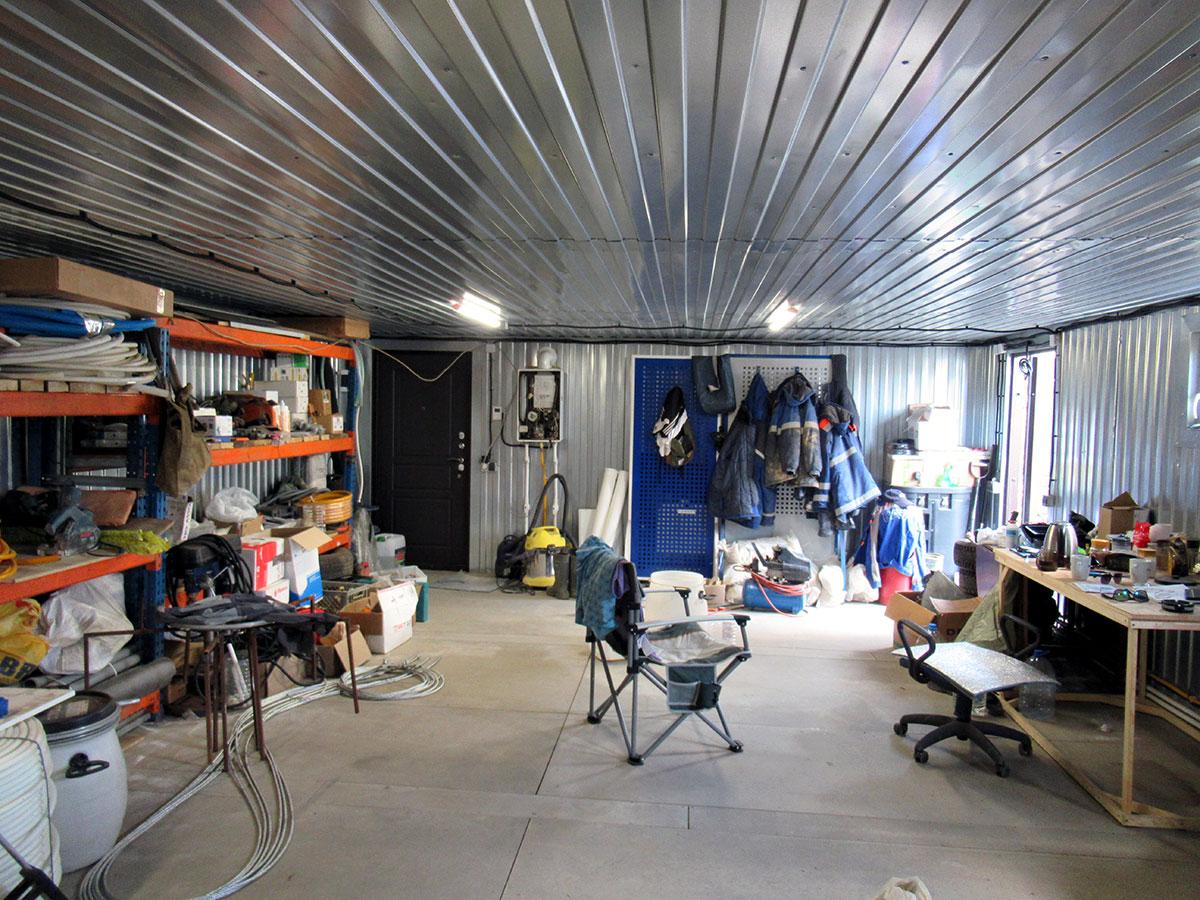 • внутренняя отделка стен и потолка из оцинкованного профлиста С-8 толщиной 0,5 мм;
